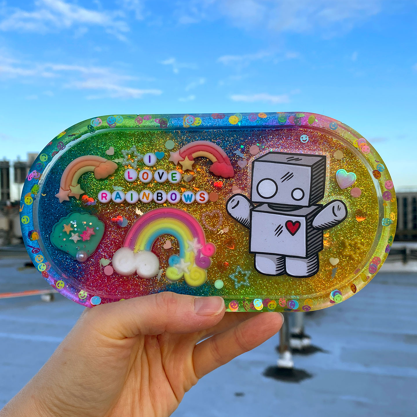 Rainbow is my favourite colour! Spruce up your desk, table or room of choice with this very colourful, glittery handmade tray.