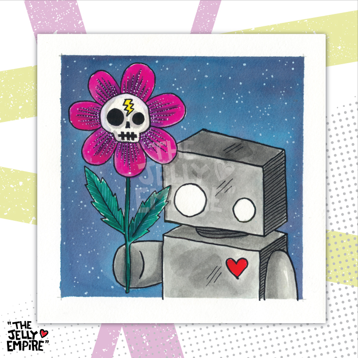 6x6" reproduction of my original art, that also includes a 1" boarder to head with framing.