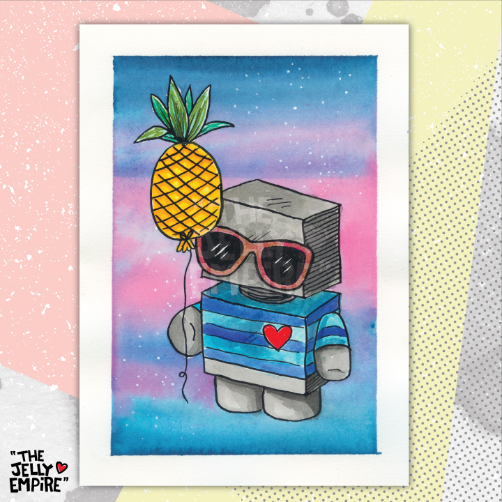 6x6" reproduction of my original art, that also includes a 1" boarder to head with framing.