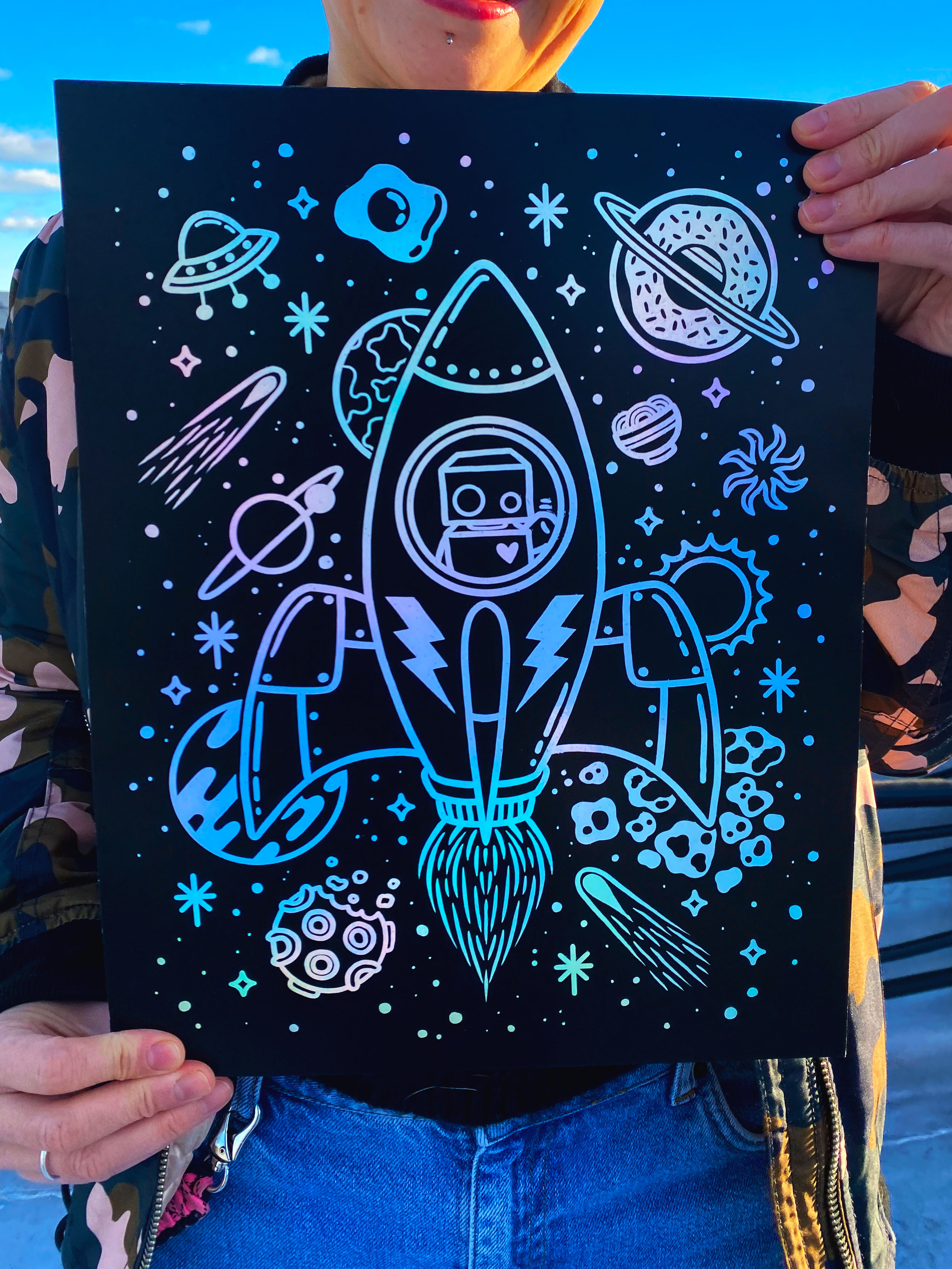 This print measures W 11" x H 14" and is printed on iridescent satin heavy card stock.